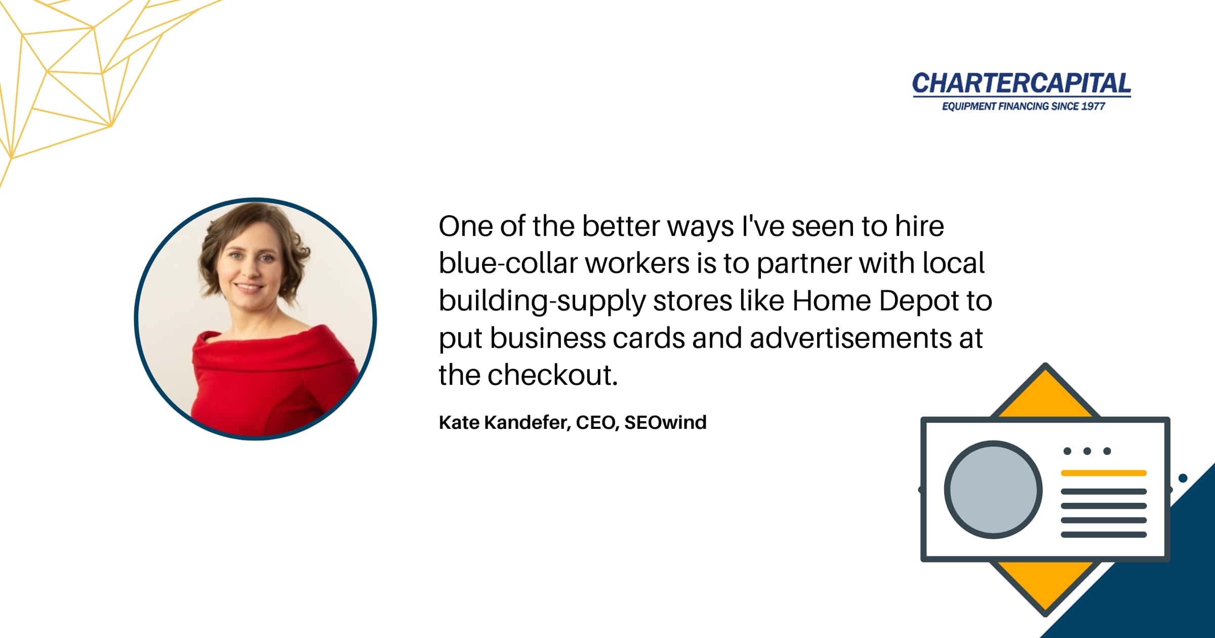 One of the better ways I’ve seen to hire blue-collar workers is to partner with local building-supply stores like Home Depot to put business cards and advertisements at the checkout. If possible, you can expand this to other types of stores as well, but hardware stores are usually your best bet. Nine times out of ten, it doesn’t take much work to get an agreement to put an unobtrusive set of cards or a small advertisement out, but even if it requires signing some sort of small advertising agreement, I consider it well worth it.